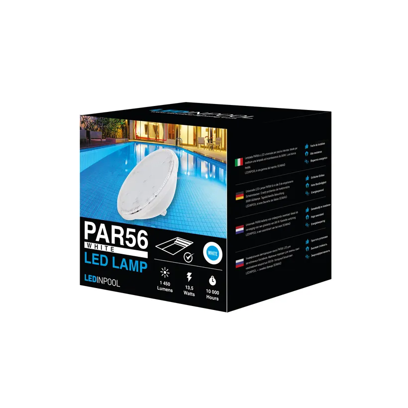 Cette ampoule LED Blanche LEDINPOOL By Seamaid est idĂ©ale pour le remplacement d’une lampe Ă incandescence 300W. AdaptĂ©e aux piscines enterrĂ©es et Ă©conome en Ă©nergie, cet Ă©clairage sera la finition parfaite pour votre bassin.
