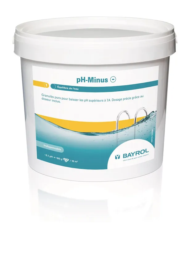 Le pH Minus BAYROL, permet de baisser les pH supérieurs à 7,4. La pureté de sa formule assure une action efficace et rapide. Son dosage est facile grâce au doseur inclus. Conditionné sous forme de poudre, il est compatible avec tous les traitements (brome, oxygène actif, PHMB,…), tous les revêtements (liner, carrelage, silico-marbreux, polyester). Contient: Hydrogénosulfate de sodium.